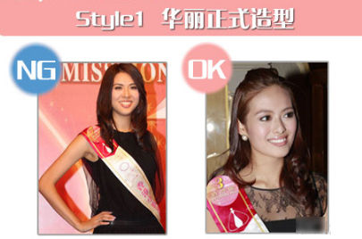 “香港小姐”的评选一向是以大方、优雅、自然为标准的,然而发布会的造型若仅仅遵循这个标准却不求新意、不根据自身五官特点来做整体造型则难免被淘汰,下面就是几组造型的wrong和right解析: