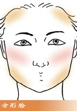 1、用比肤色深一号的粉底,在额头两侧与下颚两侧打深。
