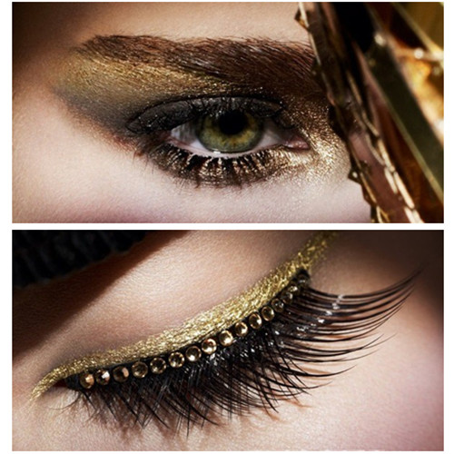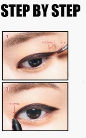 先把睫毛夹卷,使眼睛看起来更大,然后在上下眼睑睫毛根部涂上浓黑的眼线。