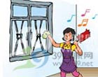 擦挂窗户时动作要大,这样运动双臂、胸部和腰部。