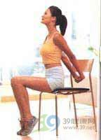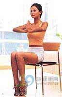 预备姿势:端坐在沙发或坐椅上,拉长颈部,挺胸收腹,双手置于体侧略后方,两眼平视前方。