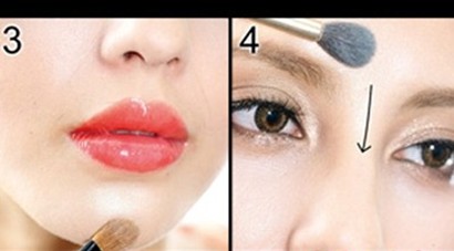 修容除着重范围,选刷毛松散的笔刷,较不易产生色块,下手力道也别太重,少量多次刷颜色较自然。