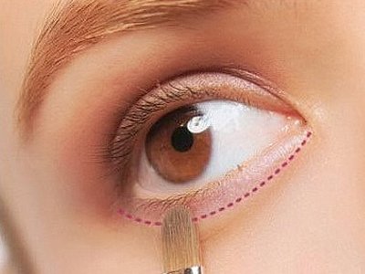 Step2:用小号的眼影刷蘸取眼影,刷在下眼睑处。由眼头至眼尾慢慢减淡。