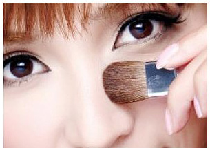 point3:鼻翼两侧刷上比肤色深一号的阴影,强调出鼻梁的高度,使整体的轮廓更加分明。