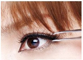 在夜店昏暗的灯光下,平淡无奇的裸妆直接化成无妆,因此眼妆一定要配合上浓密的假睫毛,选择造型稍微夸张点的也无妨,用镊子将假睫毛作出你想要的造型,修剪出适合自己眼睛的弧度,用假睫毛胶水黏上即可,眼睛立马放大N倍。