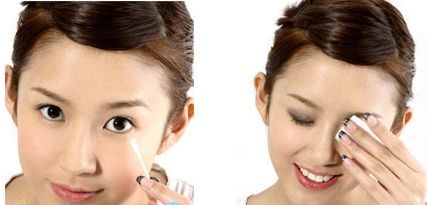 滴一点卸妆液到化妆棉上,然后闭上双眼,依眼皮的肌理,由眼头向眼尾方向慢慢抹去;抹下眼线位置时双眼向上望。尽量避免过度拉伸眼部肌肤产生细纹。
