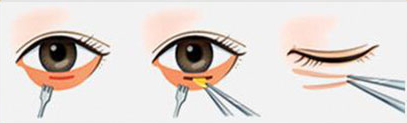 外切法:从眼睑皮肤入路,在眼睑皮肤表面做个隐蔽的小切口,从中取出眶隔脂肪,然后在根据皮肤的老化情况以及脂肪取出后的空袋情况,适当加以切除多余的松弛皮肤,缝合,术后效果自然逼真。