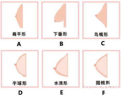 大家都知道,胸部和人的面孔一样,没有千篇一律的面孔也没有一模一样的胸部。但是按照姑娘们的胸型来分,大致可以分为扁平形、下垂形、鸟嘴形、半球形,水滴形和圆锥形6种。