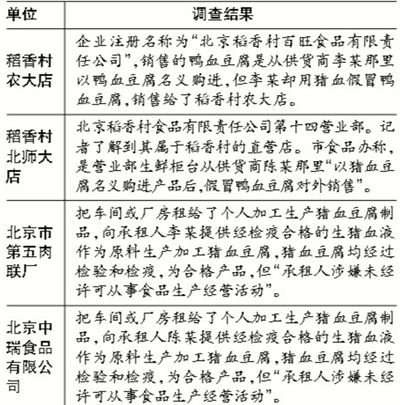 昨晚,北京市食品办通报“假鸭血”调查情况,北京稻香村两家门店问题性质各有不同,其中北师大店被查明“以猪血豆腐假冒鸭血豆腐销售”,另外北京第五肉联厂和北京中瑞食品有限公司的承租人涉嫌未经许可从事食品生产经营...