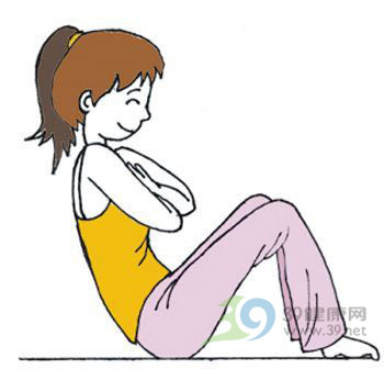 仰卧在地板上,腿抬高至与地板呈90度,手放在臀部下。多使用下腹部的腹肌,把腿举高。8--10次为一组,做2--3组。腹肌运动较为吃力,所以可依照体力来调整次数。