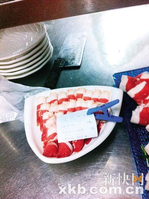 在厨房里,菜单和夹子被员工直接扔在羊肉上。