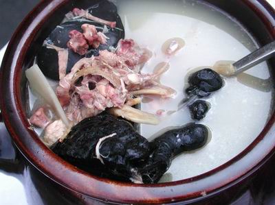 2、海狗肾捣烂,与糯米、酒曲酿酒,每日饮二次,每次二汤匙;或海狗肾一具(切片),人参15克,淮山药50