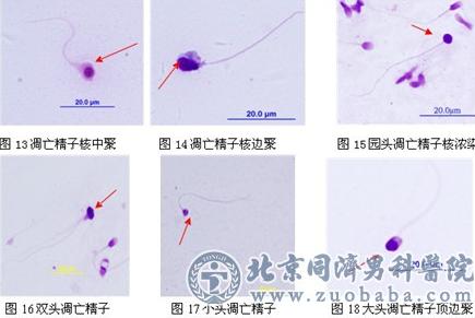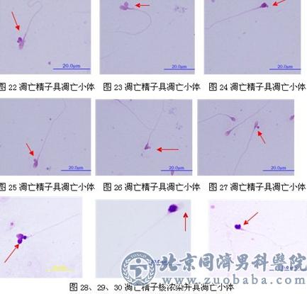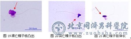 2.2精子凋亡头核凸出形态:凋亡精子头核凸出、浓染、、边聚(图19、20)头核伸长(图21)。