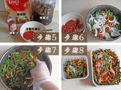 1.把韭菜洗好沥好水分,没有青梅汁用白糖来代替。银鱼汁网上可以买得到(做凉拌菜,泡菜时常用)