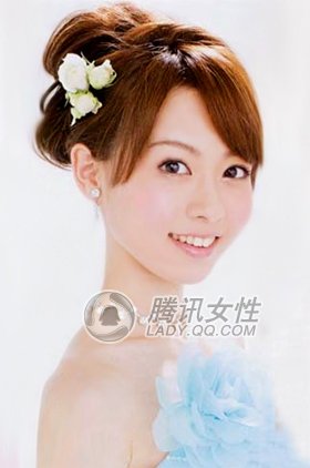 花朵与盘发是最佳拍档!与熟女露出额头的成熟盘发不同,这种适合年轻少女们的清凉盘发必须重视刘海的作用,齐刘海或厚重斜刘海都可。脑后最好采用较松的花式盘发,同时增加花朵发饰或辫子元素的装饰,打破盘发的老气。