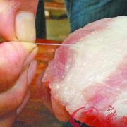 ▲消费者反映的所谓“肉中虫”,其实都是猪肉中的肌筋,多出现在血管、神经、淋巴管等处(下方2条肌筋为煮熟后产生膨胀现象有点类似虫丝)。这些肌筋可以拔出。湛江徐闻近日盛传“猪肉有虫”相关部门多次现场鉴定后确认“类...