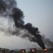 在山东沂南县铜井镇有个叫叶落沟的村,一到傍晚,满村恶臭袭来,村民们就连窗户也不大敢开。(视频截图) 随着黑烟冒起,一股股刺鼻的怪味,传遍整个村庄。(视频截图) 记者沿街还看到一些散发恶臭的副产品,大多是叶落沟村一些村...