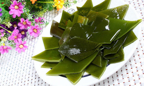 5.海带帮助排便不长胖。热量低且充满胶质、矿物质的海带是很适合现代人的美容健康食品。海带富含可溶性纤维,比一般纤维更容易消化吸收,帮助顺畅排便。最大的优点是,海带热量低,做为宵夜点心不用担心发胖,很适合爱美的女性。