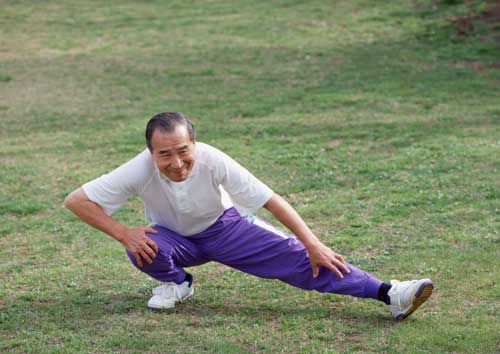 牵拉运动:采取站或坐的姿势,两臂放于身体内侧,缓慢地向两...