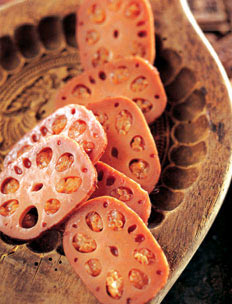 3.将藕放入锅中,加入水,以淹过藕为宜,再加入麦芽糖,用旺火烧。待水开后,移至小火焖5~6小时。加入冰糖及糖桂花,取出切片即可。