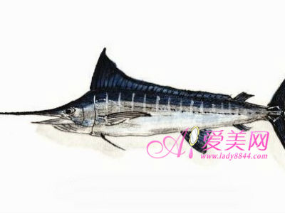 功能:属低脂、低热量食材的旗鱼,能驱寒养气、强身健体,当中的蛋白质、维生素b6等营养素对皮肤则有滋润、修护及抗发炎作用,且含不饱和脂肪酸,有助维护心血管健康。