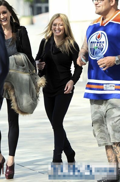 点评:希拉里达芙,虽然身高并无过人之处,比例也绝非完美,但胜在穿衣有道。全套紧身风格黑色衣着,使人看起来苗条不少,窄腿裤与夸张的高跟短靴是拉长身体的好武器。