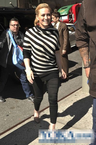 点评:黑白斜纹上装,下搭9分紧身窄腿裤可以让女人显得十分干练。搭配上一双素色高跟鞋,俨然一个摩登女就活灵活现了。希拉里达芙,总是能巧妙的通过着装来变现自己的魅力。