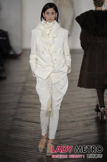 象牙白绸缎的白色套装,在金融危机当下,ralph lauren推出如此精致舒适的外套实在是聪明的选择。