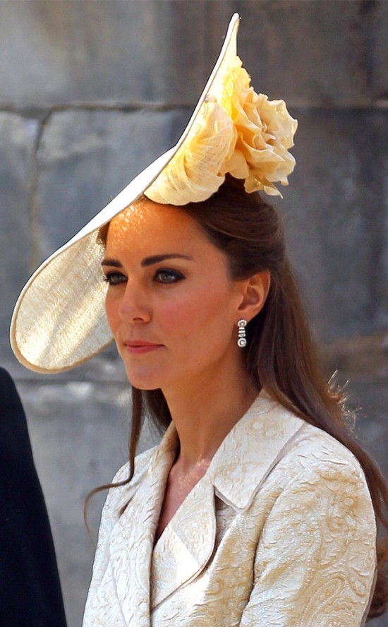 凯特王妃佩戴的这款设计微妙的反转款礼帽,犹如盛开的水仙花一般的美丽,颜色也非常适合王妃。