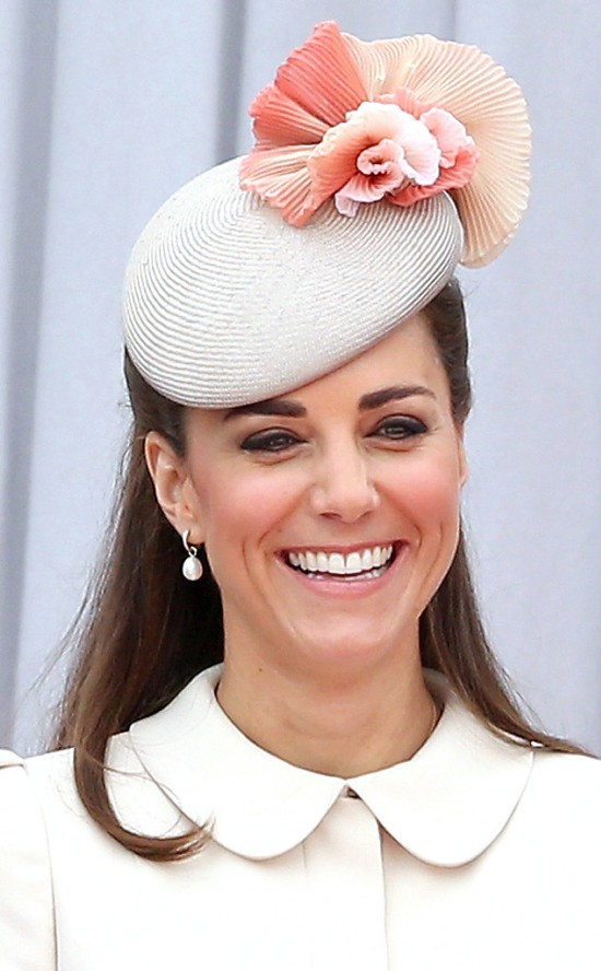 凯特王妃选择用灰色来衬托她的经典。在英女王伊丽莎白二世2014年的生日庆典上,凯特王妃戴着由Jane Taylor设计的水滴形的灰色礼帽。