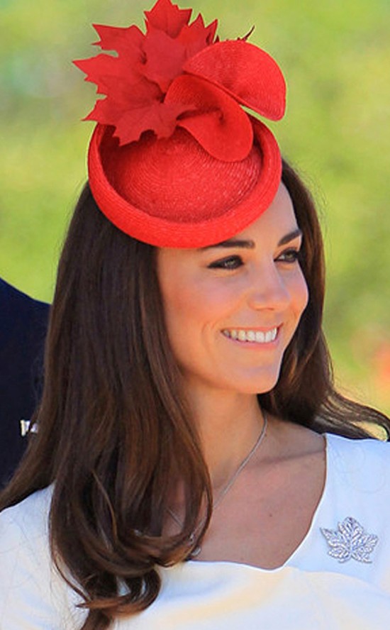 凯特王妃戴着这顶礼帽到访加拿大魁北克省,这款精美的Sylvia Fletcher礼帽顶部正是一簇代表着加拿大的红色枫叶,这样的搭配别具匠心。