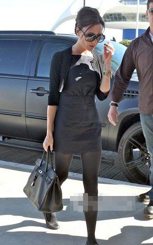 贝嫂也做出了相同的装束,不过小外套更贴身,黑裙收口更窄,更加有复古情怀,胸部不够丰满的mm大可尝试这种搭配。同时全身的黑色也具有视觉收缩的功效。