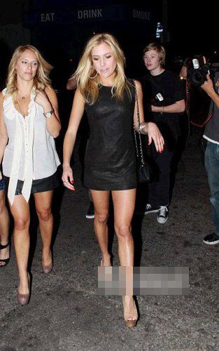 换了身背心裙的kristin cavallari重现巨星范。修饰了上围不足的同时也让秀场的腿型显露出来。身材瘦小的mm可不要模仿反光的面料哦。