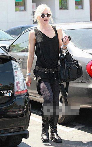 将小黑裙混搭到全身的搭配里,gwen stefani提供了一种可行方案。下身的豹纹图案配上黑色靴子,嬉皮间略混了些朋克的感觉。