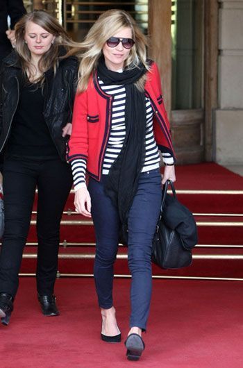 这张街拍当时一出场就被众人所爱戴,原因是凯特姐总是快人一步把本季的潮流元素亮出来。于是乎我们这一季的购物清单可以列为:清爽条纹衫一件,醒目复古外套一件,深蓝单宁裤一条,oversize包and墨镜……
