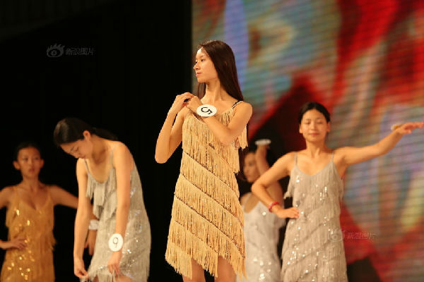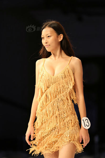 2014年10月8日,上海,早前,环球小姐举行决赛前排练,素颜亮相T台相貌“雷人”。现场,一位着红内衣新疆籍选手似不堪高跟鞋站累,俯身撸脚大秀胸部春光,而后封冠军的19岁嫩模微笑示镜头时腿现多块蚊苞显尴尬。图为新疆籍素颜环球小姐。