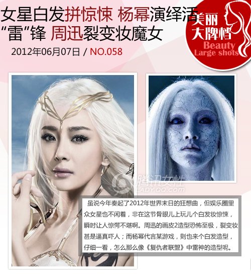 都说这是个追求个性,标新立异的时代。但白发对妆容的要求也是相当之高的,有人聪明的以妆容突出来掩盖白发带来的沧桑感,有人利用白发配合到位的妆容来营造恐怖的效果,有人则挫挫的选错了妆容,本想女侠一番,却变得英气...