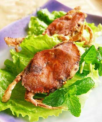 店里的大厨告诉我们,其实这种蟹就是中国南海的青蟹,只是在一年的春秋换季之分,蟹壳比较软,所以,点这道菜的食客完全不用担心这软壳蟹是否加了什么化学用品。