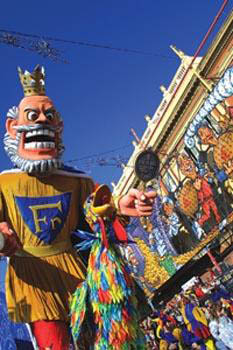 令人新奇的面具是狂欢节的特色,在古代的时候,那些面具的相貌更是吓人。古人相信,那是辟邪驱魔,以及防止农作物之害的良法。尼斯的狂欢节,人们在大马路上巡行,又歌又舞,经数日而不衰,节目多姿多彩,务令全市浸淫于欢乐的气氛。