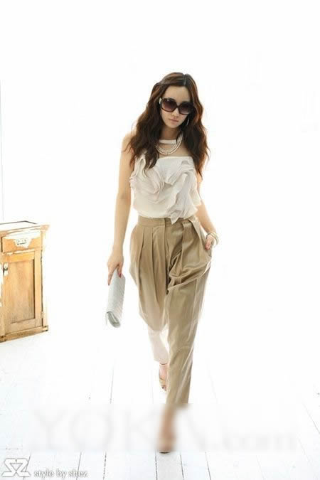 层层叠叠的褶皱堆积成了花朵型浪漫上衣,搭配高腰工装裤,大气华丽,卓尔不凡。