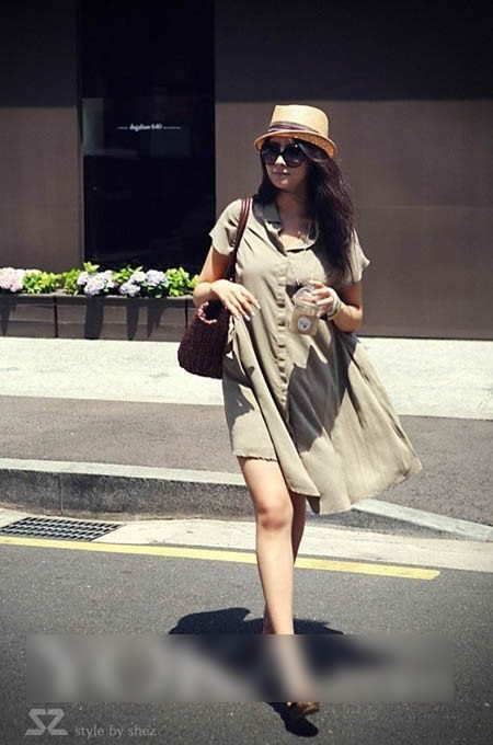 休闲风衬衫款连衣裙,宽松的下摆轻松舒适,朋友小聚的休闲装扮,有质感的墨镜和包包是名媛的最爱,突出质感。