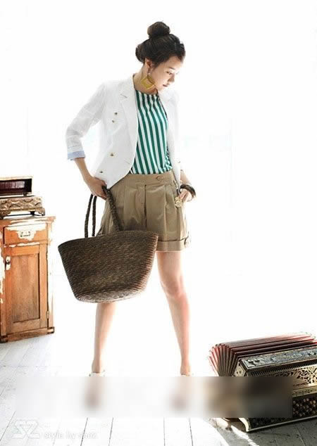 干练的男孩风西装外套,在夏天就穿着白色款,清新的航海度假风。