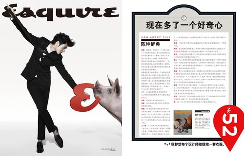 如此骄人成绩,自然成为各类时尚杂志争抢的封面明星。在最近一期的《时尚先生》杂志,陈坤翻拍了一组60年代国外《时尚先生》杂志的经典封面。画面上,陈坤与一只名牌猪对视共舞,画面极具冲击力,展现出陈坤多元化的表演特点。