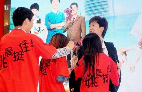 此前,穿着印有“姚晨挺住”T恤的粉丝给凌潇肃送花