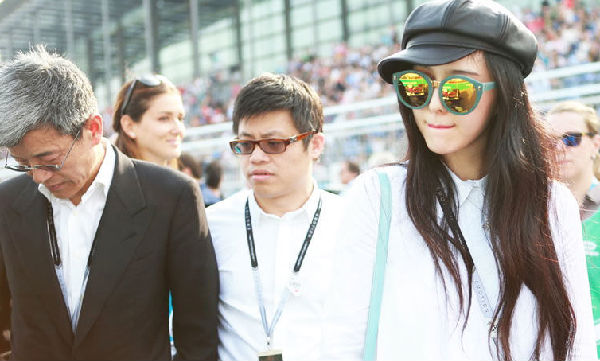 2014年9月13日,北京,范冰冰现身北京奥体中心。当天,北京奥体中心举办电动方程式大赛时,作为形象大使的范冰冰在赛前参观了车道。只见范爷穿白衫白裙搭配彩色眼镜亮相,潮范十足,她不时与工作人员贴耳热聊很是亲密,在见着记者偷拍时,范冰冰敏感地以手挡脸忙躲避记者。图为范冰冰与男子热聊。