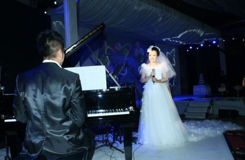 据介绍,潘阳原隶属于二炮文工团,但因为未来老公石磊是香港籍,鉴于团里演员不能与非大陆籍人士结婚的规定,潘阳选择为爱放弃军人身份,在今年正式转业,与男友步入婚姻殿堂。婚礼现场,新郎石磊更是现场大秀炫目琴技,一曲《月亮代表我的心》倾注了满满的爱意,而一段古典钢琴的演奏更是收获掌声无数。潘阳更在老公的伴奏下,深情献唱了一曲《endless love》,将婚礼气氛推向高潮。