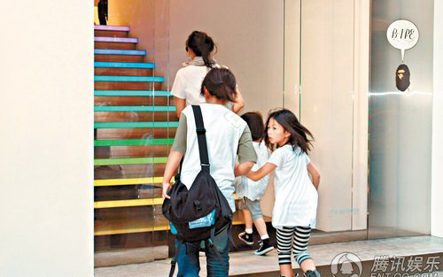 2009年8月23日,香港,婚后息影的邱淑贞(豆豆),前日(8月21日)带着两名女儿到中环逛街,却被大批记者包围,最后被迫躲进老公沈嘉伟开设的时装店避风头。
