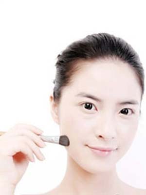 颧骨下方若显凹陷,会给人成熟感。运用沿着腮红轮廓打上大片珠光,再度加强圆滚双颊。珠光会随着光线和角度变化出立体色泽。