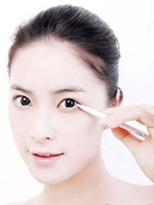 在黑眼珠里外刻意加粗眼线线条能把长形眼放圆放柔。眼珠到眼尾的下眼线处再描绘带银、白珠光眼线,眼周围变更圆,能自然调整凤眼、长眼。