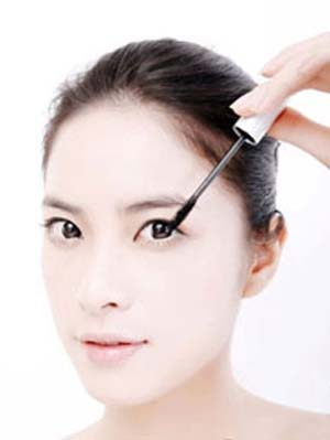 舍弃假睫毛,全体刷上睫毛膏后,只要在刚刚加粗线条的上方再刻意加强长度,圆眼效果会更突显。能很自然的放大巨眼。
